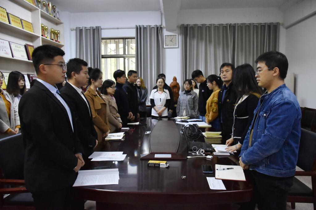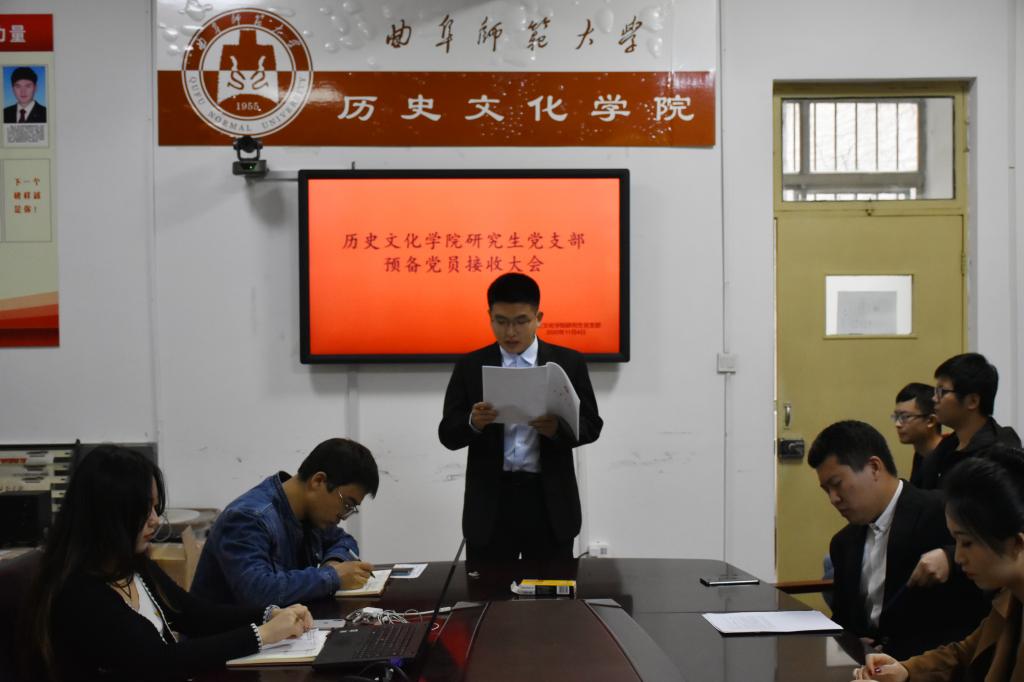 11月4日下午4点,成人短视频 研究生党支部在文史楼二楼会议室举行预备党员接收大会暨预备党员入党宣誓大会。支部党员与入党积极分子参加此次大会。