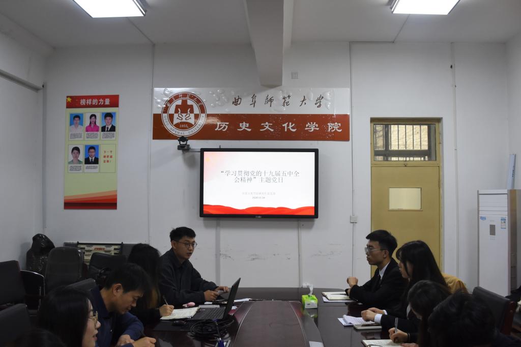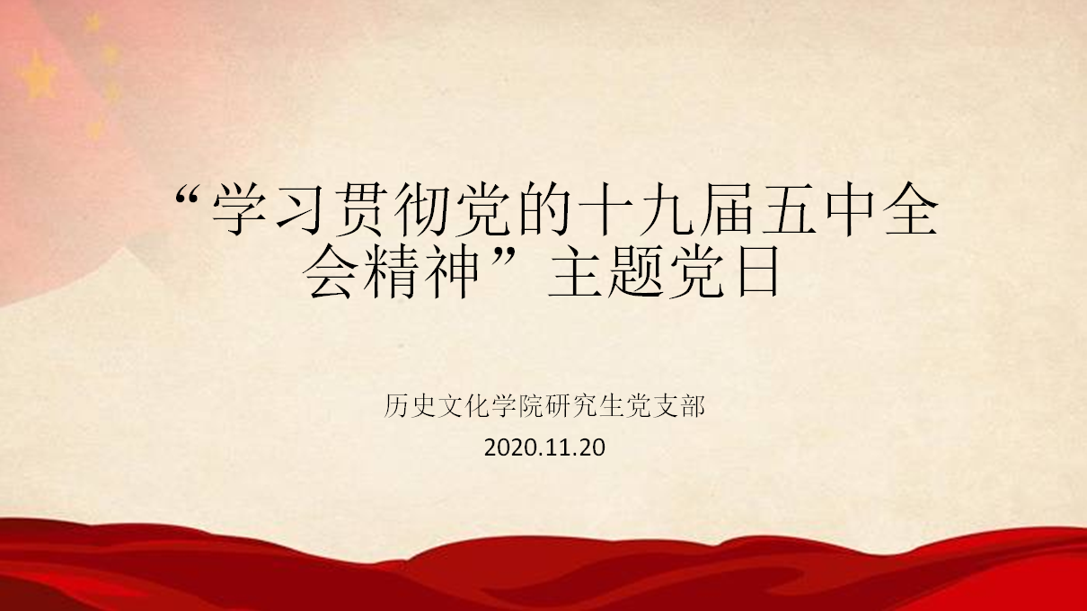 11月20日下午3点,成人短视频 研究生党支部在文史楼二楼会议室举行“学习贯彻党的十九届五中全会精神”主题党日活动。研究生党支部书记孙锋同志主持活动,研究生党支部宣传委员徐丽砚同志领学,支部全体党员同志参加了本次党日活动。