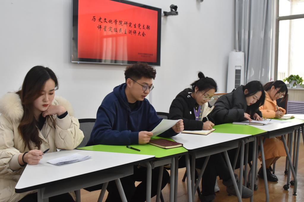 12月16日下午三点,成人短视频 研究生党支部在文史楼505会议室召开党员大会。为深入落实全面从严治党要求,进一步加强我校基层党组织建设,提升党支部建设规范化水平,充分发挥党支部战斗堡垒作用,研究生党支部根据学校《党支部评星定级管理办法》《党支部建设规范提升工作方案》要求并结合支部实际,召开党员大会,全体党员和群众代表对党支部工作和发挥作用等情况进行测评。