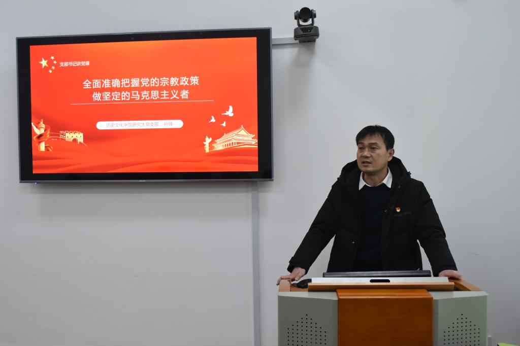 此次支部书记讲党课活动的主题是“全面准确把握党的宗教政策,做坚定的马克思主义者”。孙锋书记强调,党员要坚决执行不信仰宗教、不参加宗教活动的规定,必须坚持党的宗教工作基本方针,全面贯彻党的宗教信仰自由政策,积极引导宗教与社会主义社会相适应。作为在校党员,同志们应坚持“两个不得,五个严禁”,遵循马克思主义宗教观,加强对青年团员的宣传教育活动,做热爱祖国、热爱人民、维护中华民族大团结、为中华民族伟大复兴贡献力量的模范先锋。