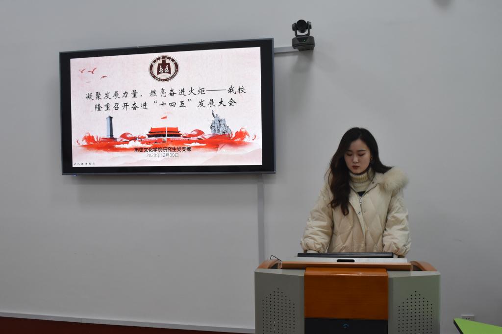 随后,研究生党支部开展学习了以“凝聚发展力量,燃亮奋进火炬——曲阜师大隆重召开奋进‘十四五’发展大会”为主题的党日活动。焦洋同志带领大家学习了成人短视频 校长张洪海在大会上的讲话。大会强调要把握突出高质量发展这一主题主线,强化两个关键,实现三大突破。张洪海校长表示,一代又一代曲师人筚路蓝缕、砥砺进取,用实际行动书写了忠诚、践行了担当、铸就了荣光。作为曲园人,我们应当信心百倍,始终坚信,在全体师生自强不息、团结奋斗的拼搏下,学校一定能够再创辉煌。