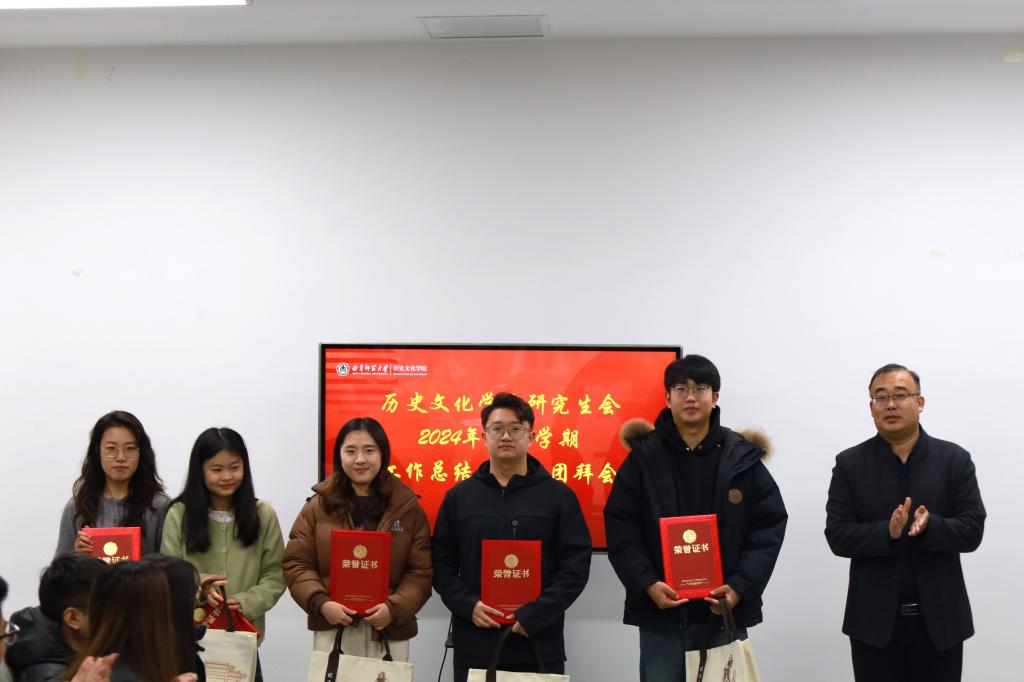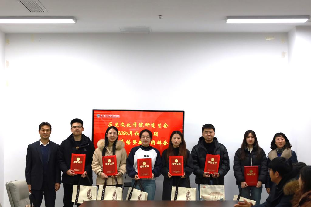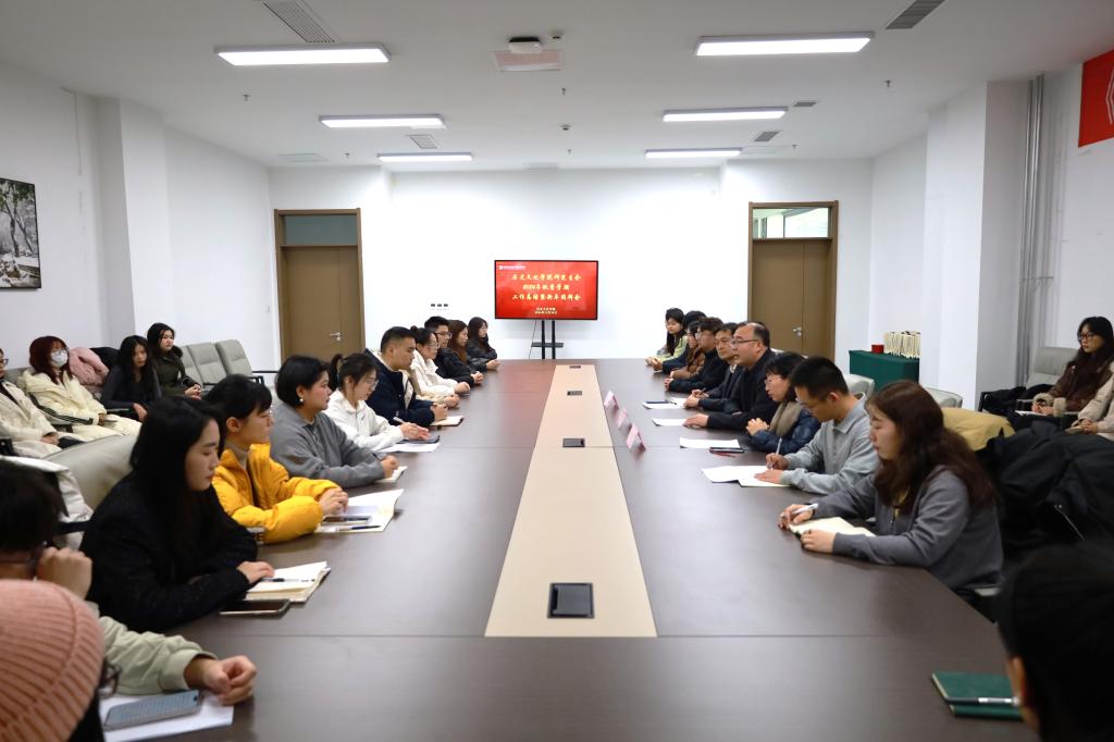 2024年12月30日上午,成人短视频 研究生会成员在孔子书院A209举行研究生会2024年秋季学期工作总结暨新年团拜会。学院党委副书记王建阳、研究生辅导员孙锋、研究生教学秘书张松伟以及2023届、2024届党团研究生会成员共同参与此次会议。会议由2024届研究生会主席李昕主持,旨在回顾过往、展望未来,表彰优秀并促进交流。