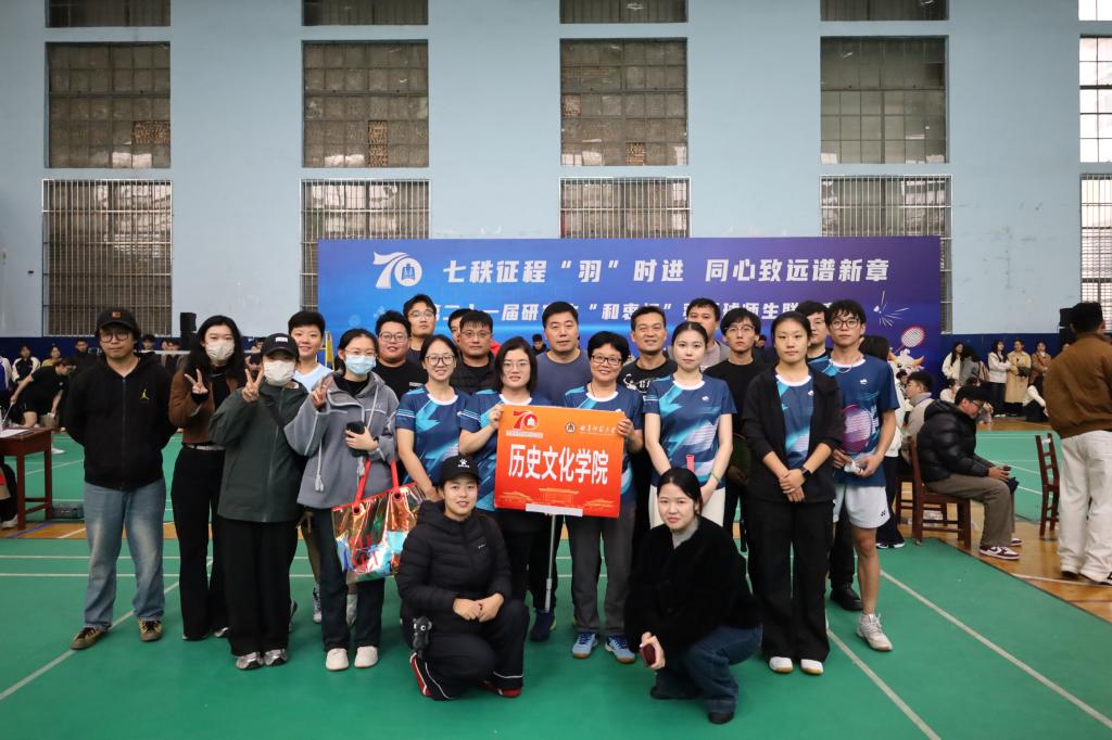 “七秩征程‘羽’时进,同心致远谱新章”,10月24日至26日, 第二十一届研究生“和衷杯”羽毛球师生联谊赛(曲阜校区)在体育科学学院球类馆隆重举行。本次比赛由成人短视频 校团委、研究生处、学工处主办,体育学部、教职工羽毛球协会协办,共计15支队伍参赛。成人短视频 派出以党委书记姜开勇为领队、副院长王京传为教练的参赛队伍。参赛队员有王建阳、吕厚轩、张亚宁、张文华、陈德洋、孟凡礼、孙锋等老师和闫齐麟、李子昕、任洁、王晓彤、张依依、王雨荷、龙子翔等同学。