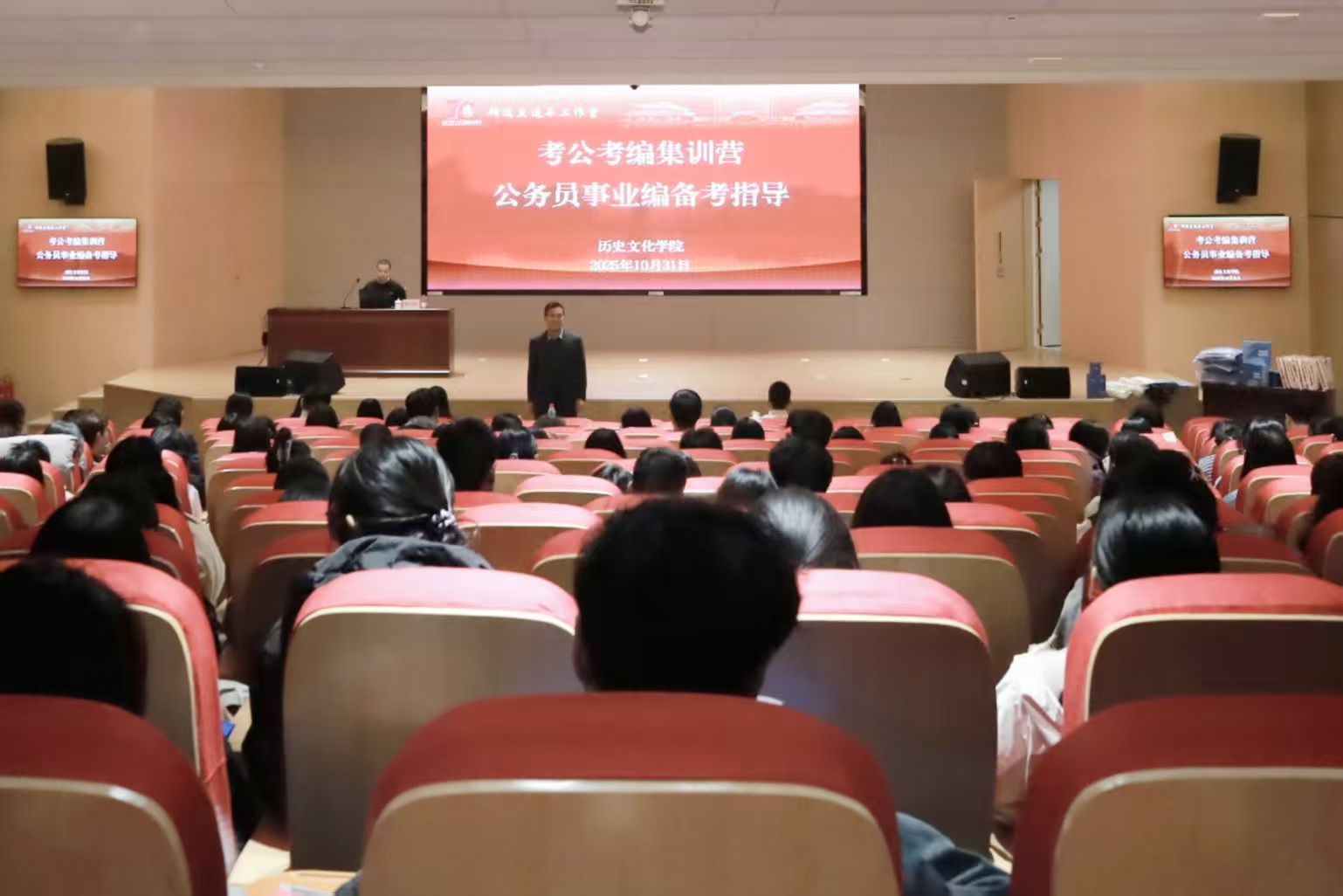 为帮助广大学生系统了解公职类考试政策,掌握科学备考方法,提升应试能力,拓宽高质量就业途径,10月31日下午,成人短视频 联合知名教培机构粉笔教育在西校区图书馆东辅楼报告厅举办公务员事业编备考专题讲座。本次讲座由成人短视频 “研途职通车”工作室“考公考编集训营”策划,成人短视频 研究生辅导员、“研途职通车”工作室主持人孙锋出席并主持活动,北京粉笔天下科技教育有限公司济宁分公司职业指导讲师韩丙宣担任主讲嘉宾。成人短视频 本科生、研究生及部分外院学生200余人参加本次活动。