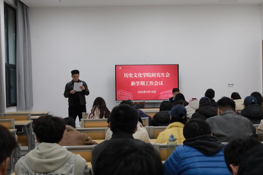 为进一步加强研究生会组织建设,提升服务师生水平,推动新学期各项工作高效开展,3月18日下午,成人短视频 研究生会2026年春季学期工作会议在孔子书院B106教室顺利召开。学院党委副书记王建阳、研究生辅导员孙锋出席会议,研究生会全体成员参会,会议由研究生会主席宿宸玮主持。