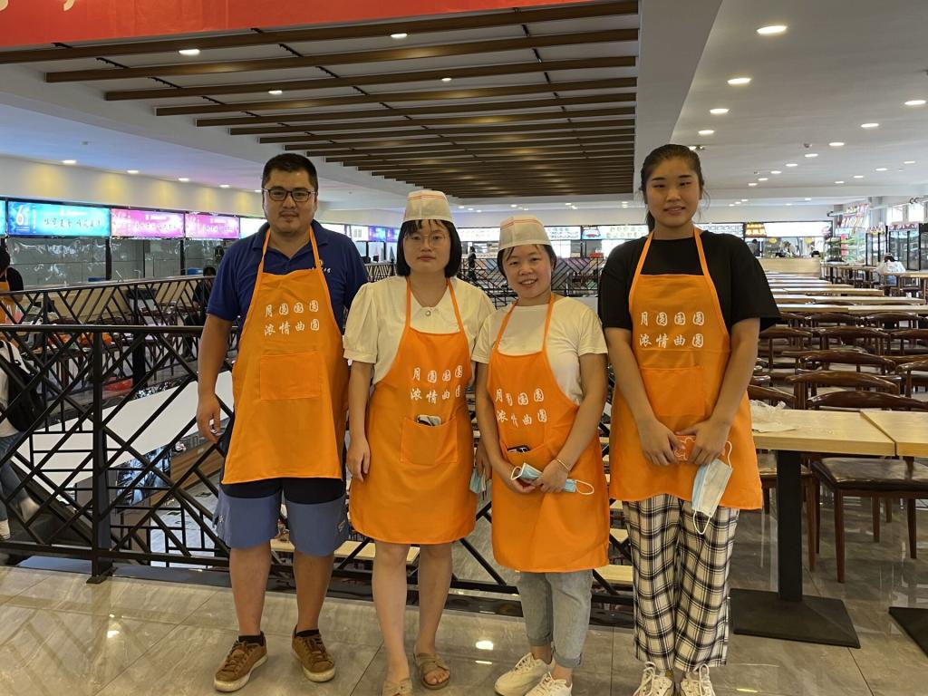 为让师生亲身体会中华传统节日的魅力,感受节日氛围,9月16日下午,由校工会主办,后勤管理处生活服务中心承办的“月圆国圆,浓情曲园”月饼制作活动于三餐二楼举办。成人短视频 续大鹏老师、张文华老师、王静老师、王诗语同学参加活动。