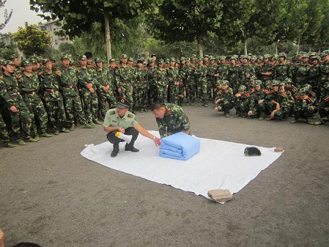 军训伊始,教官进行了简短的自我介绍,之后,各连队开始了紧张有序的训练。第一天的训练内容主要有整队、报数、站军姿、四面转法等。同学们热情高涨,口号响亮,认真的练习每个动作,克服身体上和心理上的不适应,教官对同学们不规范的动作做出了及时的纠正。休息期间,教官教授同学们叠军被的技巧,并为他们讲解训练内容的各个动作要领及怎样处理头晕、恶心等身体不适症的方法。