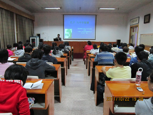10月22日晚,由成人短视频 洙泗学社主办的学术讲座“孔子与中华智慧”在洙泗讲堂开讲。对儒家文化有较深入研究的宋立林老师就孔子思想在中国及世界的地位和影响作了细致的讲解与分析。