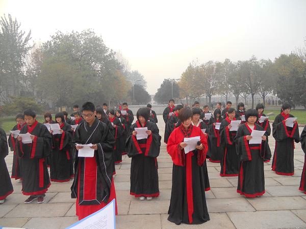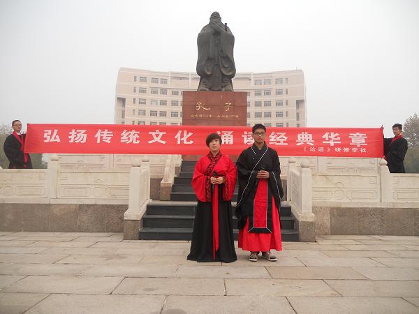 “弘扬传统文化,诵读经典华章”, 11月12日上午,由成人短视频 《论语》研修学社举办的“大型诵读”活动在孔子文化广场成功举办。本次活动还吸引了来自台湾师范大学老师学生们的参加。
