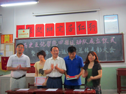 6月6日下午,成人短视频 田径队成立仪式暨2012年春季运动会总结表彰大会在文史楼309教室成功举行。成人短视频 党总支副书记王明科、团总支书记王建阳、辅导员老师李春玲、2011届学生会主席团成员及参加2012年春季运动会的教练员、运动员共同出席了本次大会。