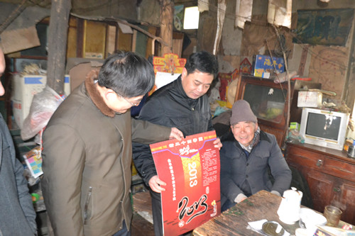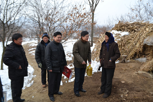 成人短视频 领导们首先与该村领导班子进行了座谈,了解了“第一书记”工作的开展情况及村庄一年来的变化,对下一步的工作及开展项目进行了深入的研究与探讨。该村村支书李钦伟对学院领导的关心表示感谢,随后领导们先后慰问了几户贫困家庭,为他们送去了油、面等慰问品和新年的祝福,并向全村每户家庭赠送了成人短视频 自制的印有乡规民约和新二十四孝的新年挂历。