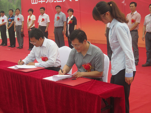 成人短视频 院长成积春与泰安太阳部落景区总经理孔祥海签订实践教学基地协议书。