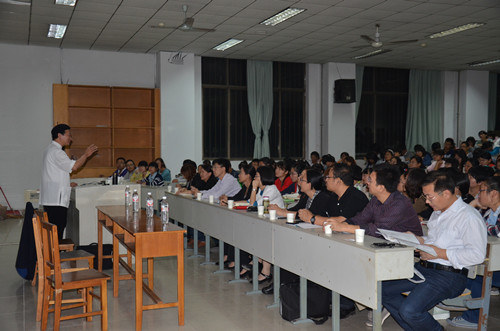 9月27日晚,台湾慈济大学宗教与人文研究所教授、所长林安梧先生在综合楼101室做了关于“话语的異化”和“存有的归復”的报告。成人短视频 院长成积春,我校部分师生及其他学校的老师听取了报告。报告由成积春主持。