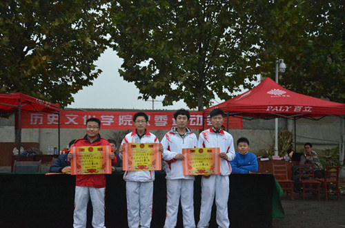 经过一天的角逐,2012级国际政治班和2012级历史学一班最终获得比赛总成绩第一名和拔河比赛第一名,2013级历史学三班、2013级国学班、2013级历史学二班获得了体育道德风尚奖。