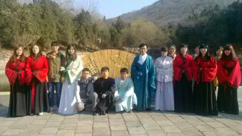 同学们在社团负责人的带领下前往石门山景区,工作人员为大家简单介绍了花朝节的历史、习俗及其相关传说,并详细为大家讲解了孔尚任和桃花扇的故事,同时还在山顶进行投壶、射箭等活动,同学们在登山踏青的过程中,不仅学习了花朝节的传统习俗,感悟传统文化的源远流长,还寻访了孔尚任留在石门山的遗迹,对桃花扇这一古典名著有了更加深刻的认识,感受到古代人与自然天人合一的情感。
