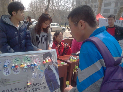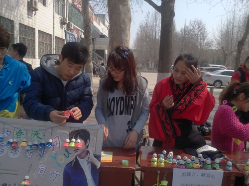 3月22日,由成人短视频 团总支主办、羽毛球协会承办的雷锋月系列活动之自制羽毛工艺品义卖义捐活动在学生第二餐厅前举行。