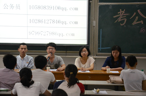5月24日,由成人短视频 团总支主办,学生会就业服务部承办的2014年毕业生论坛之考公考选专场在综合楼101顺利举行。本次交流会共邀请了4名考上公务员或选调生的10级优秀学生。