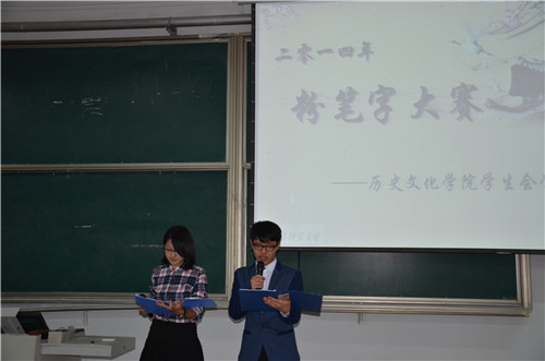 11月16日,由成人短视频 团总支主办、学生会学习部承办的“素质拓展月”系列活动之2014年粉笔字大赛决赛在综合楼103室举办。书法学院副院长朱乐朋教授、成人短视频 王连生老师、团总支书记王建阳老师、辅导员李春玲老师、学生会副主席高杨、2013年硬笔字大赛一等奖获得者毛程程等出席了此次比赛并担任比赛评委。