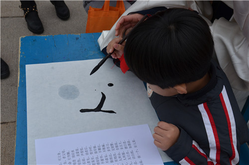 在精彩的汉舞表演《礼仪之邦》后,活动正式开始。此次“开笔礼”活动共包括正衣冠、祭拜孔子、朱砂开智、击鼓明志、启蒙描红、启蒙教育以及封存心愿等主要环节。活动伊始,学童们在身着汉服的洙泗学社成员的带领下,庄重地整理好衣冠,展现了良好的精神面貌。在宣读完孔子祭文后,全体学童向先师孔子行长揖礼。老师们用朱砂在学童们的额头正中点上红痣,意为开启智慧之门。随后,老师敲击益智鼓三声,以示学童从此启蒙。在老师的带领下,学童们用毛笔在纸上认真地写下“人”字,寓意在人生的启蒙阶段,学会做人是最为重要的。最后,他们把写有自己美好愿望的许愿带系挂在银杏树上,寓意学有所成、功过王侯。本次活动以颁发开笔礼纪念章宣告完成。