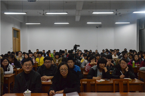 杨教授首先对我校的朴实学风加以肯定,鼓励同学们认真学习。针对国外部分学者将儒学本质理解为忠义的看法,杨教授提出一个重要的观点: “仁”是儒学的本质,也是国学、更是传统文化的本质。孔子将“仁”从此前的诸德之一提升到“道”的高度,孟子则为“仁”提供了哲学的论证。在儒学发展的过程中,既吸收了诸子百家的思想要素,也借鉴了佛教的合理内涵,形成一个注重人文、崇尚仁爱、讲求天人合一的学说体系。该体系与西方的思想体系有一定的相似之处,但更多的是差异。在杨教授看来,儒学在其发展过程中既遭遇过外来文化的挑战,也曾经被本土民众所不解乃至漠视,但是其自身仍有顽强的生命力,在经过百年的风风雨雨后,儒学已经从彻底的被否定变成实现中国梦的动力。