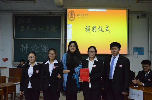 最终,来自2014级国学班的北辰队夺得了本届“书生如此多娇”辩论赛的冠军,并获得现场微博互动抽奖环节中的 “最佳人气奖”称号。其中来自北辰队的阎文莉和白泽队的马学骏分别获得“最佳辩手”的称号。