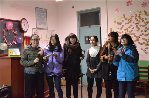 领导老师像往年一样来到各个班级为同学们带去了节日的慰问与祝福,并在同学们的盛情邀请下参与到节目表演中,韩琳琳老师和主席团成员的一曲《至少还有你》将晚会推向了高潮。整场晚会师生同乐,欢声笑语不断,晚会在一片其乐融融的节日气氛中结束。
