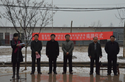 1月25日,成人短视频 传统文化教育实践基地暨梁山县大学生村官爱心服务站揭牌仪式在梁山县黑虎庙镇师庄村举行。我校团委副书记张明洁、成人短视频 党总支副书记王慕东、团总支书记王建阳、梁山县委组织部副部长安圣陶、梁山县团委书记张思贞、黑虎庙镇党委书记陈传刚、镇长邓兆国等相关领导出席了活动。
