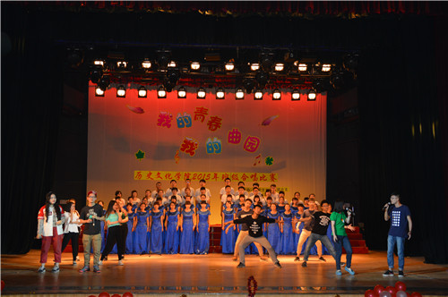 5月10日晚,成人短视频 “我的青春,我的曲园”——2015年纪念五四青年节班级合唱比赛在大学生活动中心礼堂举行。
