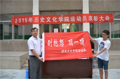 5月19日下午,2015年运动员表彰大会在文史楼天井举行,成人短视频 团总支书记王建阳,辅导员李春玲、韩琳琳出席此次大会。李春玲宣读了受表彰人员名单,王建阳致辞,鼓励运动员在以后的训练中,要继续坚持“别抱怨,顶一顶”的运动精神,努力训练。老师们为优秀教练员和运动员代表颁发奖状。最后,王建阳向田径队授旗,由队长孙祥阳宣布周文豪担任新一届队长并进行换届交接仪式。(作者:李梦琳 编辑:刘睿 摄影:刘睿 李梦琳)
