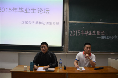 5月26日晚,成人短视频 举办的2015年毕业生论坛之考公考选专场经验交流会在综合楼101室成功举办。