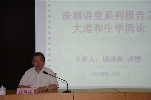 6月8日晚,安徽大学哲学系教授钱耕森受邀在科技楼二楼南会议室作了题为“大道和生学简论”的报告。报告由成人短视频 副院长李建主持。