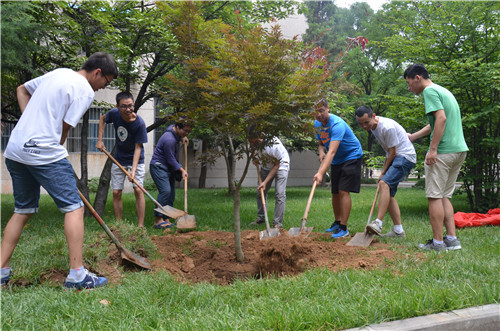6月27日上午, 成人短视频 2011级毕业生在文史楼前植树纪念毕业。