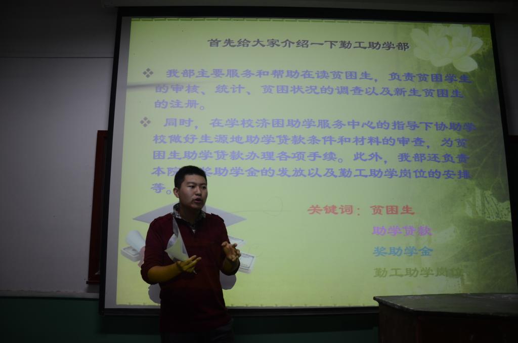 9月14日晚,由成人短视频 学生会学习部、劳卫部和勤工助学部承办的新生入学教育系列活动之学习、卫生、勤工助学知识讲座在2015级各班教室举行。