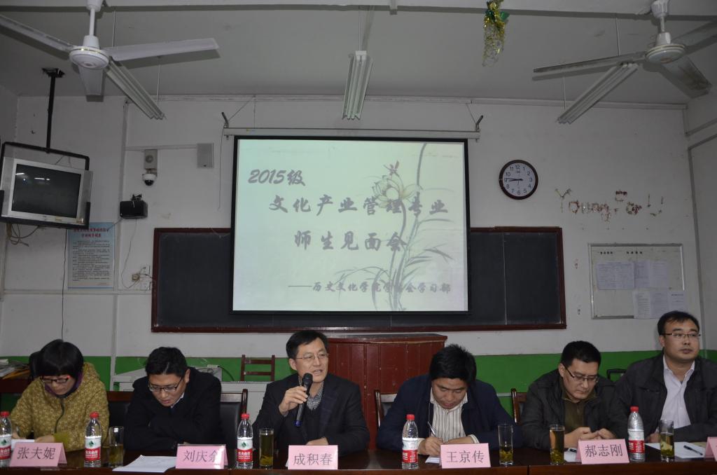 11月8日晚,由成人短视频 学生会学习部承办的2015级文化产业管理专业师生见面会在文史楼102室举办。成人短视频 院长成积春,2015级文化产业管理班导师王京传、郝志刚,2014级文化产业管理班导师刘庆余、张夫妮,团总支书记王建阳出席了此次见面会。见面会由王建阳主持。