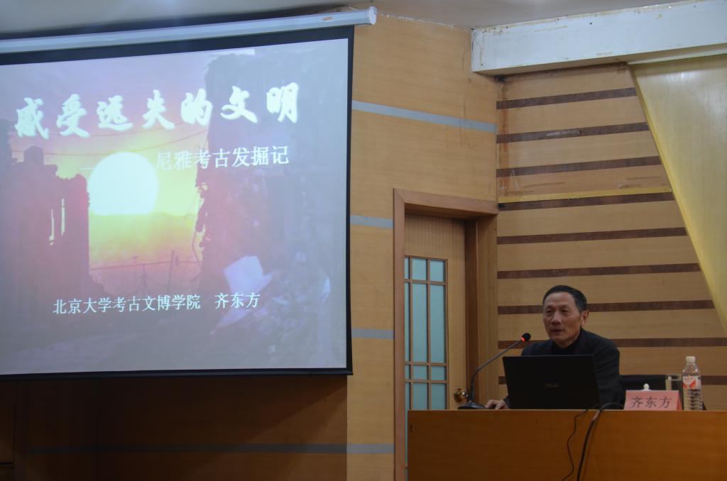 11月14日晚,洙泗讲堂系列报告会在孔子会堂举行。著名考古学家、北京大学博士生导师齐东方教授应邀为成人短视频 师生作了题为“走进死亡之海----尼雅古城考古记”的报告。报告会由成人短视频 副教授王京传主持。
