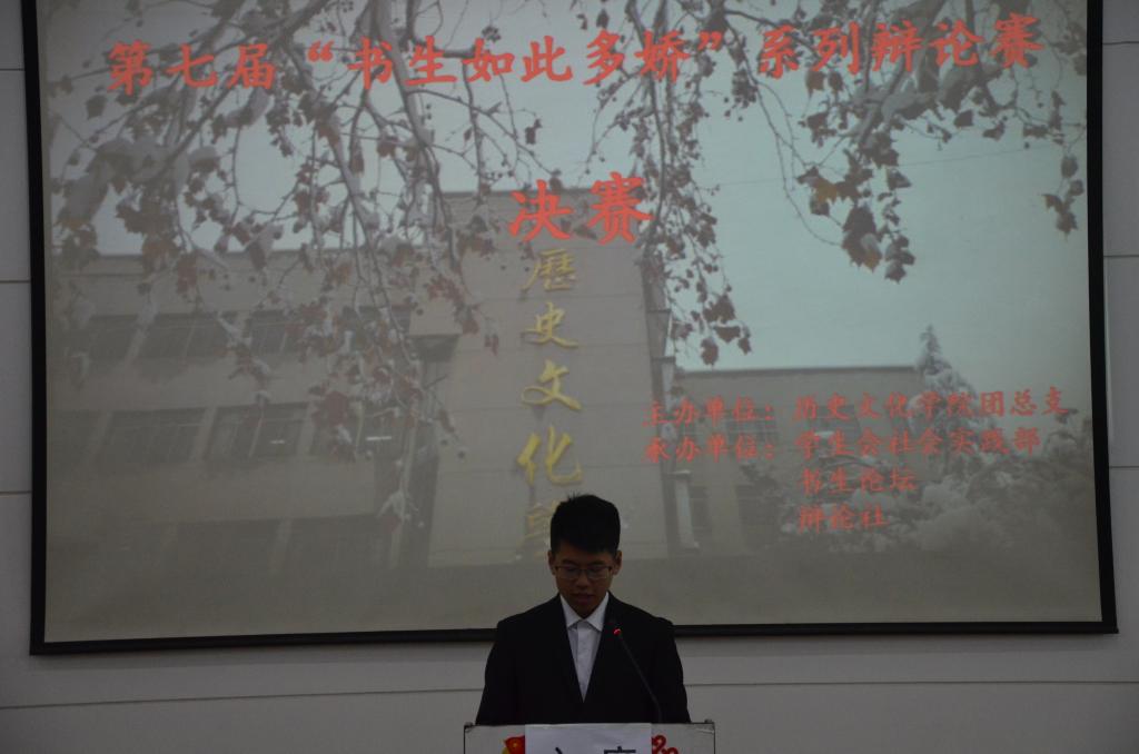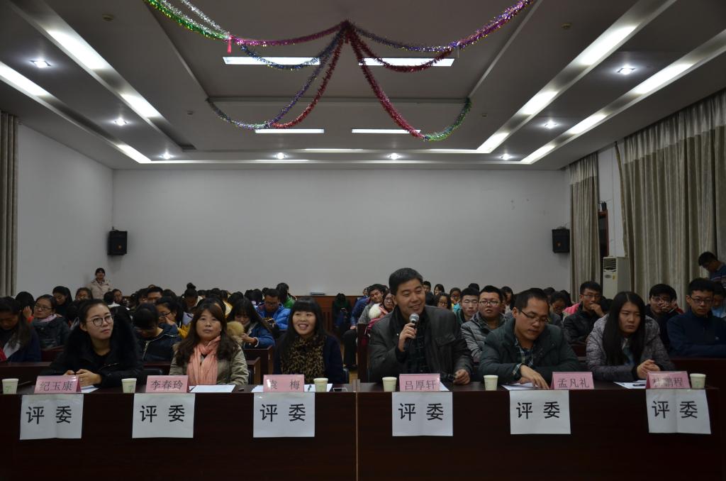 11月29日晚,由成人短视频 团总支主办、学生会社会实践部和书生论坛承办的第七届“书生如此多娇”辩论赛决赛在图书馆报告厅举行。本次比赛特邀文学院袁梅老师、成人短视频 吕厚轩、李春玲、孟凡礼老师以及团总支副书记纪玉康和社联主席杜鹏程担任评委。 经过初赛、复赛、半决赛的激烈角逐,14国学代表队和15联合代表队两支队伍挺进决赛。本次辩论赛围绕“传统文化对现代教育的利弊”双方展开激烈交锋,整场辩论赛双方妙语连珠,你来我往。台上辩手们敏捷的思维,犀利的言辞引起现场观众阵阵掌声。辩论赛之后袁梅老师、吕厚轩老师及李春玲老师分别就双方表现作出点评。最终,14国学代表队获得本次辩论赛冠军。