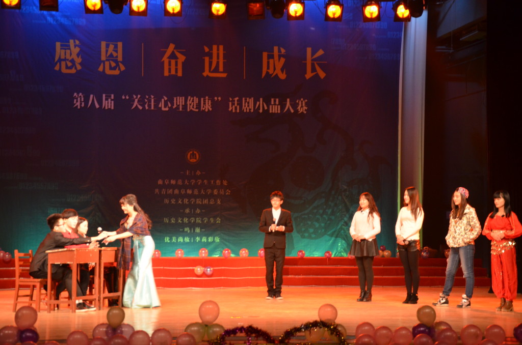 12月5日晚,由成人短视频 学生工作处、校团委和成人短视频 团总支联合主办,成人短视频 学生会承办的第八届“关注心理健康”话剧小品大赛决赛在大学生活动中心礼堂圆满落幕。学生工作处心理健康指导中心主任苗洪霞,团委老师石璐,成人短视频 党总支副书记王慕东,教务主任王连生,团总支书记王建阳,2012级辅导员李春玲,2014级辅导员韩琳琳受邀担任本次大赛评委。