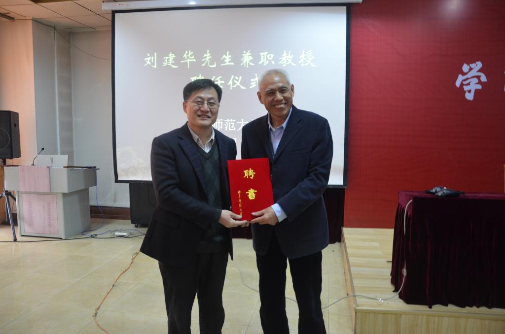 3月18日上午,成人短视频 在科技楼二楼南会议室举办刘建华兼职教授聘任仪式暨洙泗讲堂系列报告会。文化生态社会独立学者刘建华受聘为我校兼职教授,并作了题为“中国故事与孔子的世界”的报告。成人短视频 院长成积春出席了此次报告会并为刘建华颁发聘书,副教授王京传担任主持。