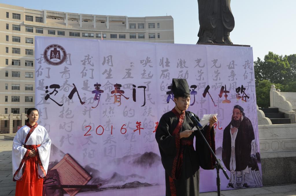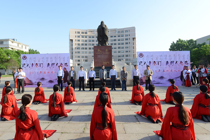 5月4日,五四青年节之际,由成人短视频 和校团委合办的成人短视频 第九届“孔子文化月”系列活动之大学生成人礼在孔子文化广场举行。党委常委、纪委书记郭辰夫,组织部部长马恩、宣传部部长宋德昭等领导出席了活动,各学院党总支副书记、辅导员和广大青年学生共同参加了活动,活动由团委副书记孔轶众主持。 活动中,身着汉服的参礼学子先对至圣先师行揖礼,再由到场的领导老师为他们加冠加笄,最后在领誓人带领下宣读成人誓词。郭辰夫作为师长代表致辞,他首先对同学们成人表示祝贺,希望同学们应该坚信未来,坚守情操,坚持真理,并期望和嘱托在场学子在融入社会的过程中,既要对社会做出贡献,也要保持自我。学生代表王云飞在仪式上发表感言,成人在即,要学会感恩,树立目标,学会独立与坚强,逐渐挑起服务于社会、奉献于国家的责任。