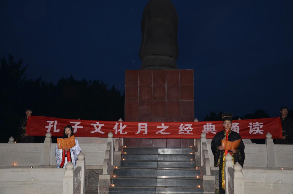 5月18日晚,由论语研修社和普通话协会承办的以” 朗朗书声,有贤如斯”为主题的经典烛光诵读活动在孔子文化广场举行。本届孔子文化月系列活动之经典诵读活动首次以烛光背景、古筝伴奏的新形式呈现在观众面前。