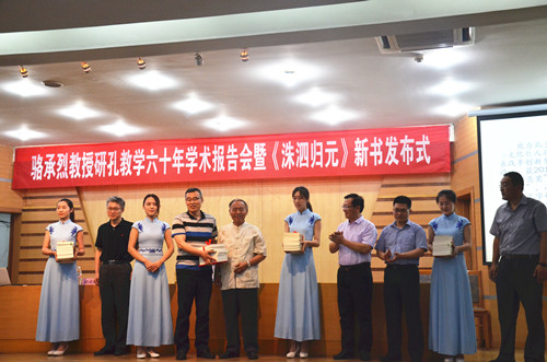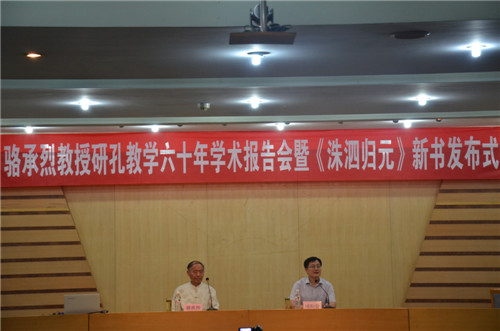 6月12日晚,洙泗讲堂系列报告之骆承烈教授研孔教学六十年学术报告在孔子会堂举行。报告会前进行了骆承烈教授新书《洙泗归元》发布式,发布式上,骆承烈教授向我校图书馆、成人短视频 、孔子文化研究院、文学院赠书。随后,骆教授为大家作了题为“骆承烈谈孔子”的报告。成人短视频 院长成积春教授主持了报告。