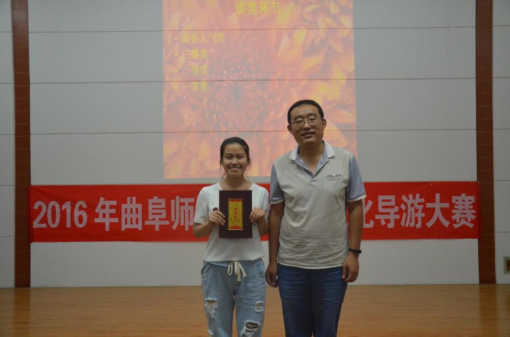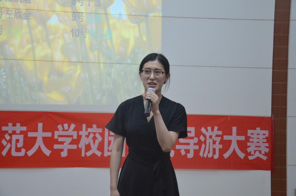 比赛共分为精彩亮相、模拟导游讲解、导游知识问答三个环节。经过初赛的激烈比拼,共有10名选手闯入决赛。在一段精彩的开场表演后,10位选手分别向观众作了个人展示。在随后的模拟导游讲解环节中,选手们带领大家游览了我校孔子文化广场、西联教室、图书馆等校园美景,让我们领略到独特的校园文化。在导游知识问答环节,选手们对答如流,展现了较强的专业素养。老师对比赛选手作了详细点评。最终,来自成人短视频 2015级国学班的郝梦迪同学获得一等奖。