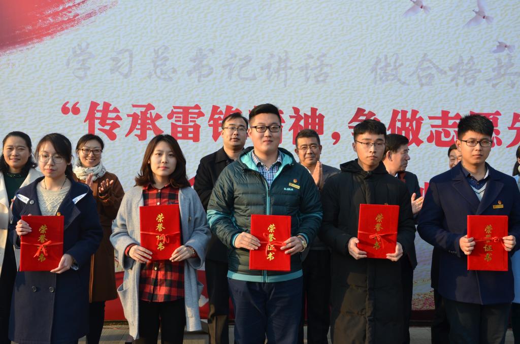 3月3日下午,我校“传承雷锋精神,争做志愿先锋”学雷锋系列活动启动仪式在大活前举行。活动首先表彰了2016年青年志愿者先进集体和先进个人,成人短视频 “国学小课堂”团队获得成人短视频 2016年青年志愿者先进集体,田蕾获得济宁市先进个人。