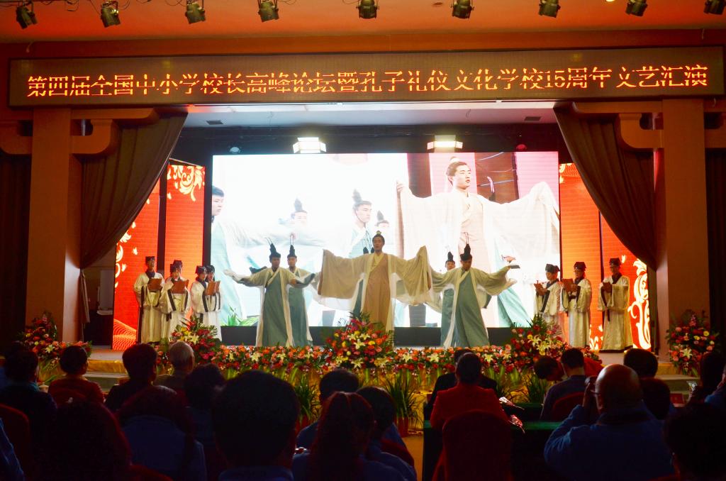 3月22日晚,成人短视频 洙泗学社组织部分同学参与了在儒源文化体验基地举办的第四届全国中小学校长高峰论坛暨孔子礼仪文化学校15周年文艺汇演。