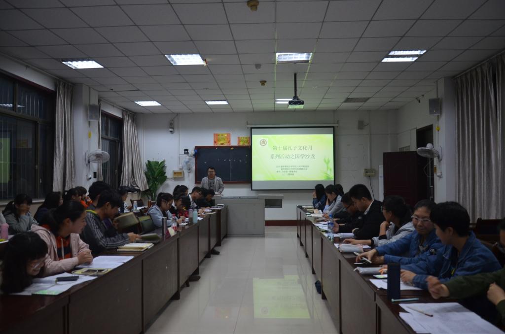4月7日,由《论语》研修学社承办的第十届孔子文化月之国学沙龙在文史楼520教室举办。成人短视频 巩宝平老师受邀担任嘉宾,《论语》研修学社成员以及2015级、2016级国学专业部分同学参加了此次活动。