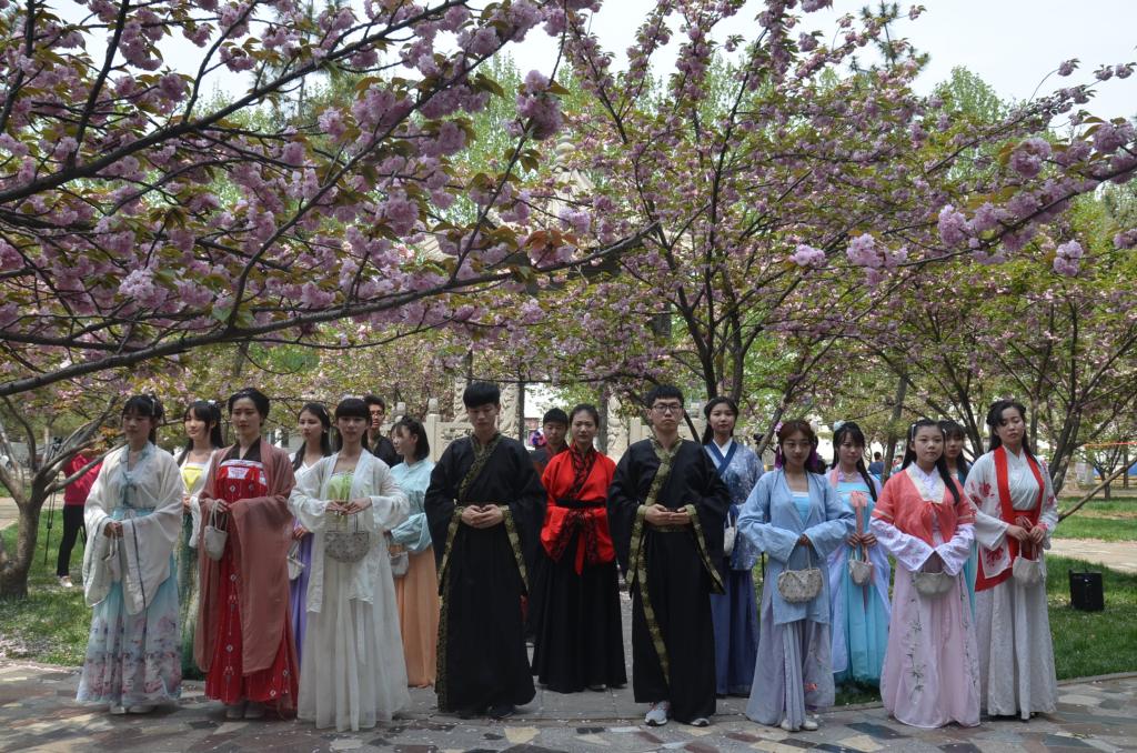 4月15日,成人短视频 洙泗学社主办的花朝节系列活动在成人短视频 综合楼北树林举行。