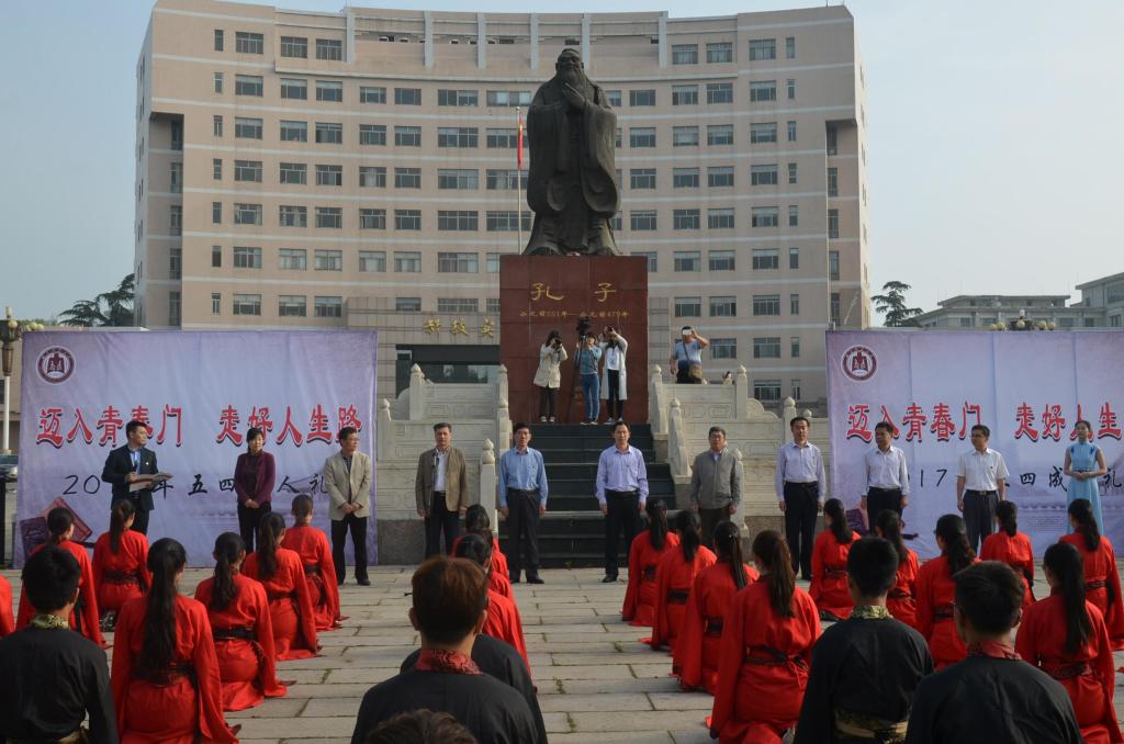 5月4日,五四青年节之际,成人短视频 第十届“孔子文化月”系列活动之大学生成人礼在孔子文化广场举行。党委常委、副校长辛杰、宣传部部长宋德昭、学生工作处处长杨永明、保卫处处长左兴才、工会主席王万民、成人短视频 党委书记尹明法、党委副书记王慕东等领导出席了活动,各学院辅导员及广大青年学生共同参加了活动,活动由黄江滔主持。