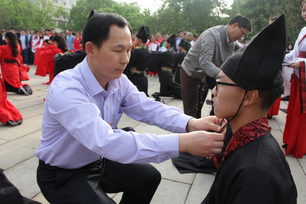 活动中,身着汉服的参礼学子先对至圣先师行揖礼,再由到场的领导老师为他们加冠加笄,最后在领誓人带领下宣读成人誓词。辛杰作为师长代表致辞,他首先对同学们成人表示祝贺,希望同学们勇于担当责任、矢志执着奋斗、传承传统文化,并期望和嘱托在场学子要用奋斗的行动书写出彩人生,紧跟时代砥砺前行,为实现中华民族伟大复兴的中国梦汇聚起源源不断的青春力量。学生代表李涵洋在仪式上发表感言,成人在即,要学会感恩,树立目标,学会独立与坚强,逐渐挑起服务于社会、奉献于国家的责任。