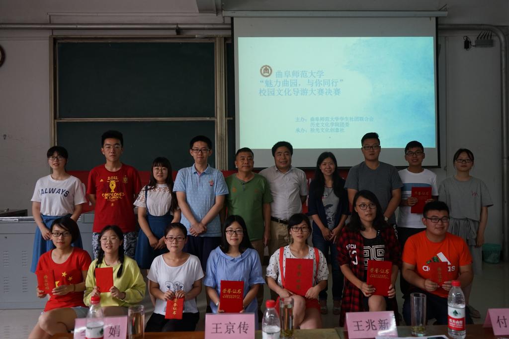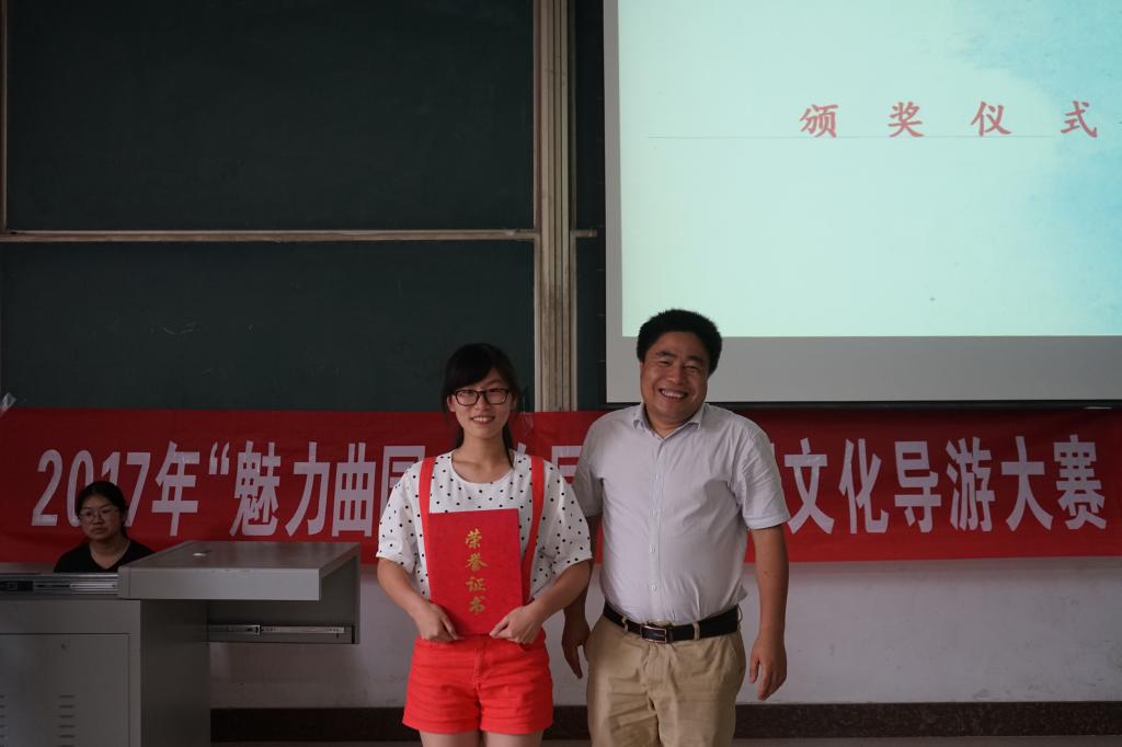 6月11日下午,由成人短视频 团委主办,拾光文化创意社承办的“魅力曲园,与你同行”2017年校园文化导游大赛决赛在综合楼103教室举行。成人短视频 王兆新、王京传、李娟三位老师出席此次比赛并担任评委。