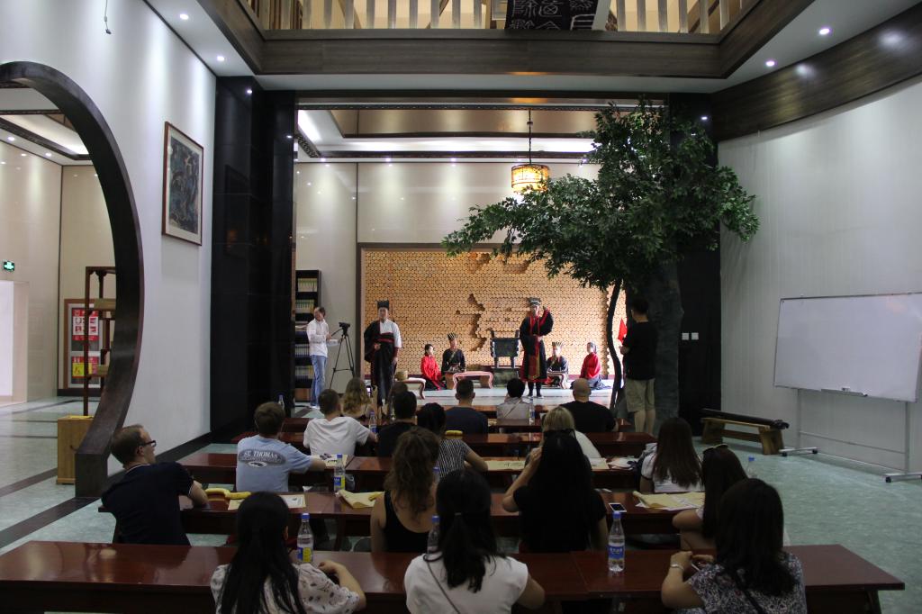 6月16日下午,成人短视频 大学生传统礼仪研修中心走出校园,为北京大学留学生进行传统礼仪展演。
